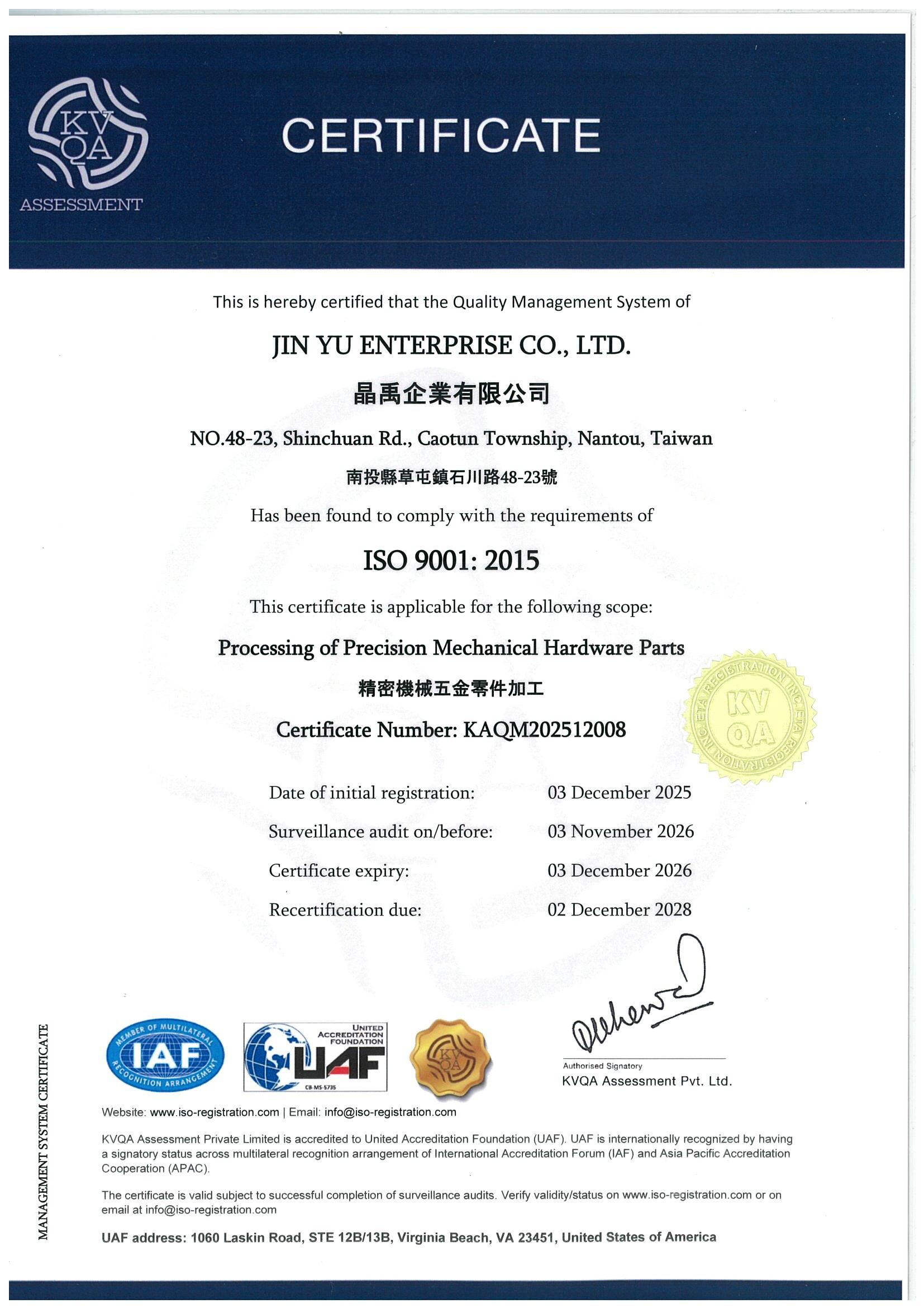 - ISO9001 : 2015